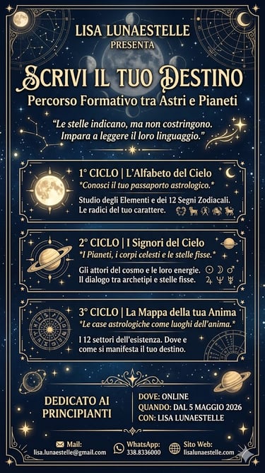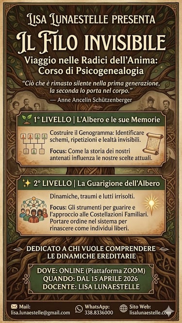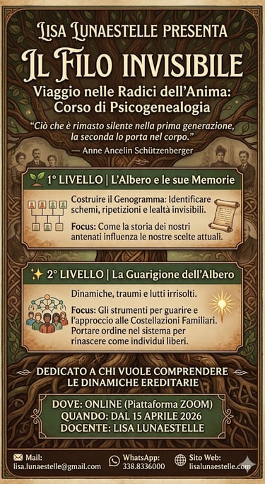 Lisa Parra, esperta in Astrologia e Psicogenealogia, ti accompagna con passione nel tuo viaggio verso la consapevolezza interiore con consulenze personalizzate e corsi di Psicogenealogia